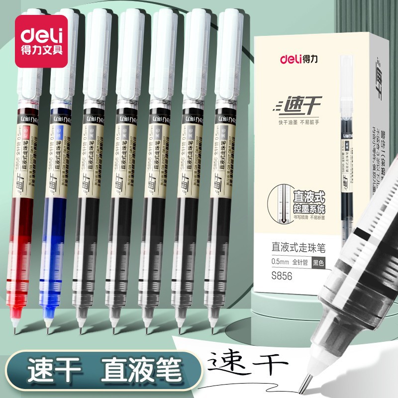デリ S856 ストレート液体速乾ペン ゲルペン ボールペン 学生試験専用 大容量 ブラック サインペン