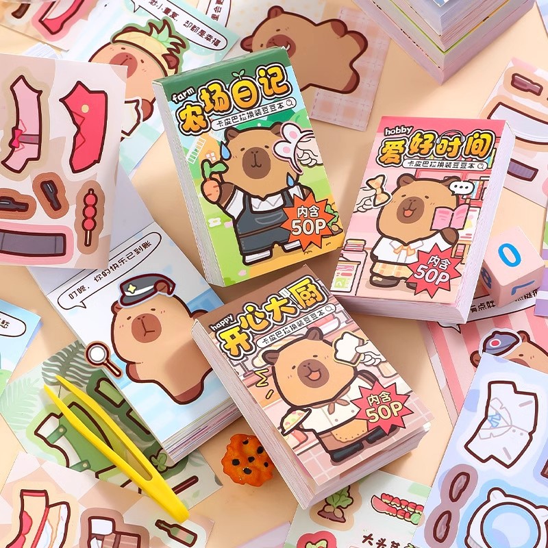 カピバラきせかえ豆手帳シール子供貼り絵漫画手帳素材シールdiy装飾カード