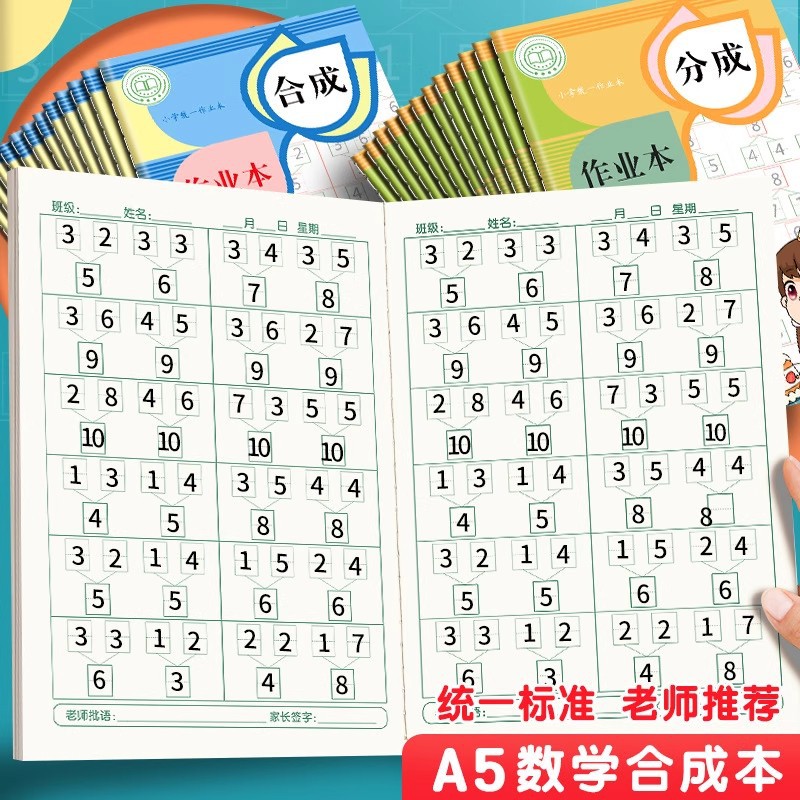 幼稚園1年生向け算数分解ブック、10以内、20以内の分解と合成の練習