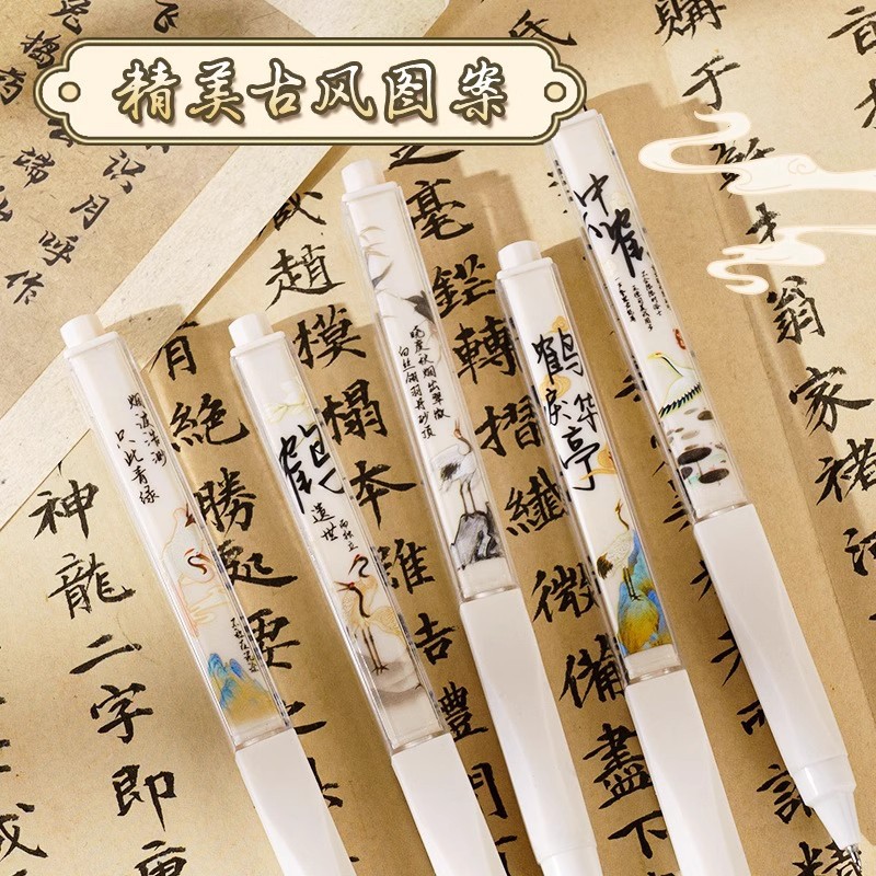 Yimulinhe Lihua Ting ペンプレスゲルペン中国風限定版学生速乾性ブラシペンニッチブラックペン