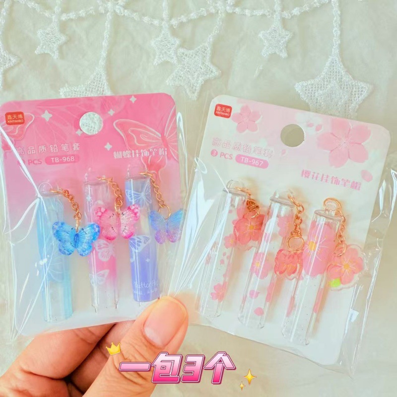 蝶ペンダント鉛筆キャップ鉛筆エクステンダー高価値インスタイル小学生漫画かわいい鉛筆保護カバー