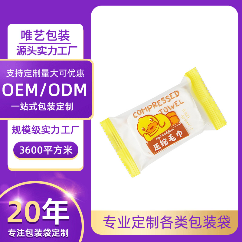 使い捨て洗面タオル包装袋カスタム圧縮携帯タオル旅行バスタオルeva小包装袋