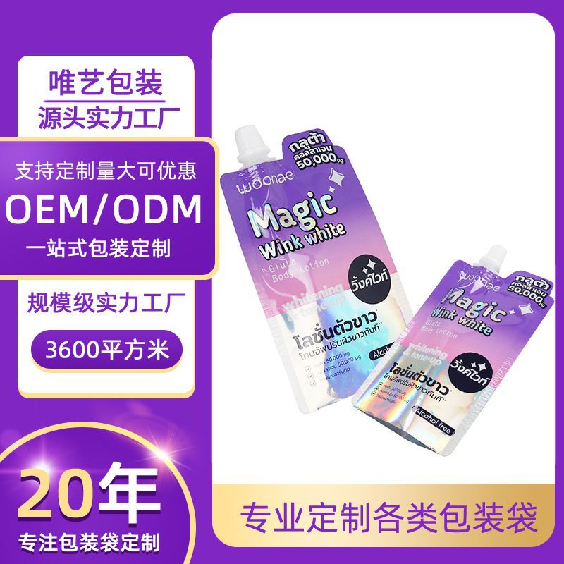 化粧品異形吸口袋オーダーメイドローション試作品サンプルバッグマスクエッセンススキンケアアルミ箔レーザーバッグ