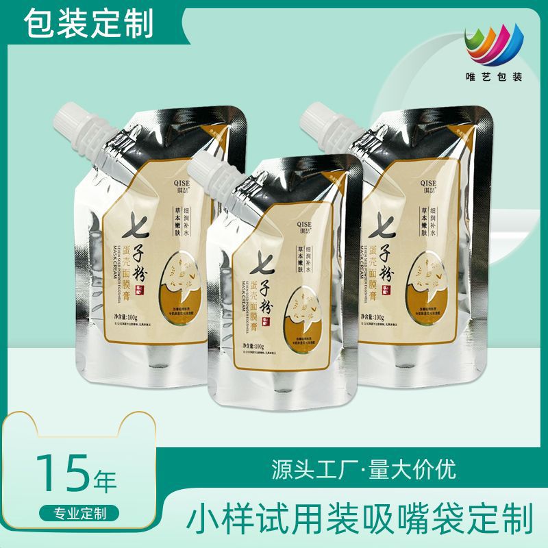 化粧品は口を吸う袋をカスタマイズして乳液を分けて袋のマスクを詰めます。