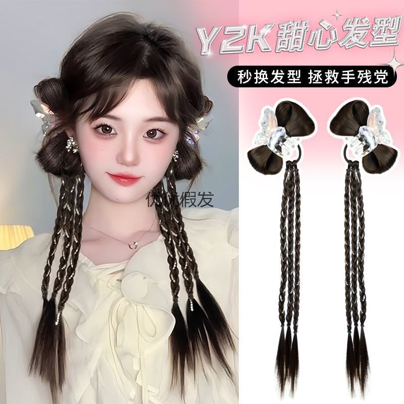 擬似髪の蝶結びは丸子の頭を挟みます。ギャルの人魚姫の頭飾りはふわふわしています。