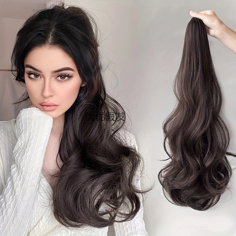 梨花巻小掴み高馬尾自然ふわふわ大波巻き化繊高温糸シミュレーションかつらポニーテール