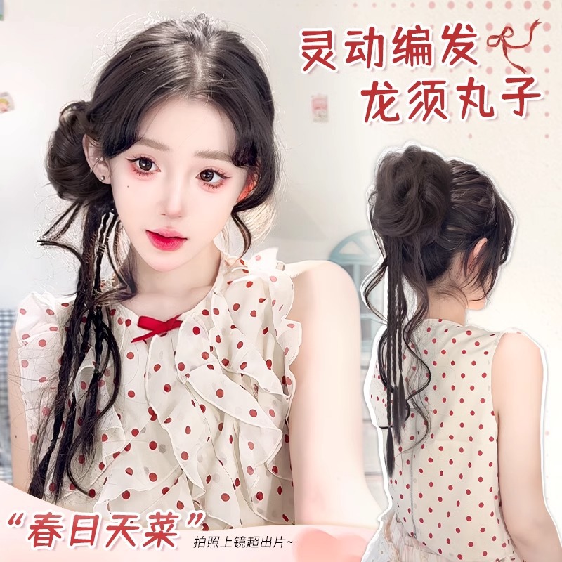 竜須の団子の頭は古風の新しい中国式のかわいい女性のふわふわしている怠け者の皿の髪の神器のつぼみの髪の包みをシミュレーションします。