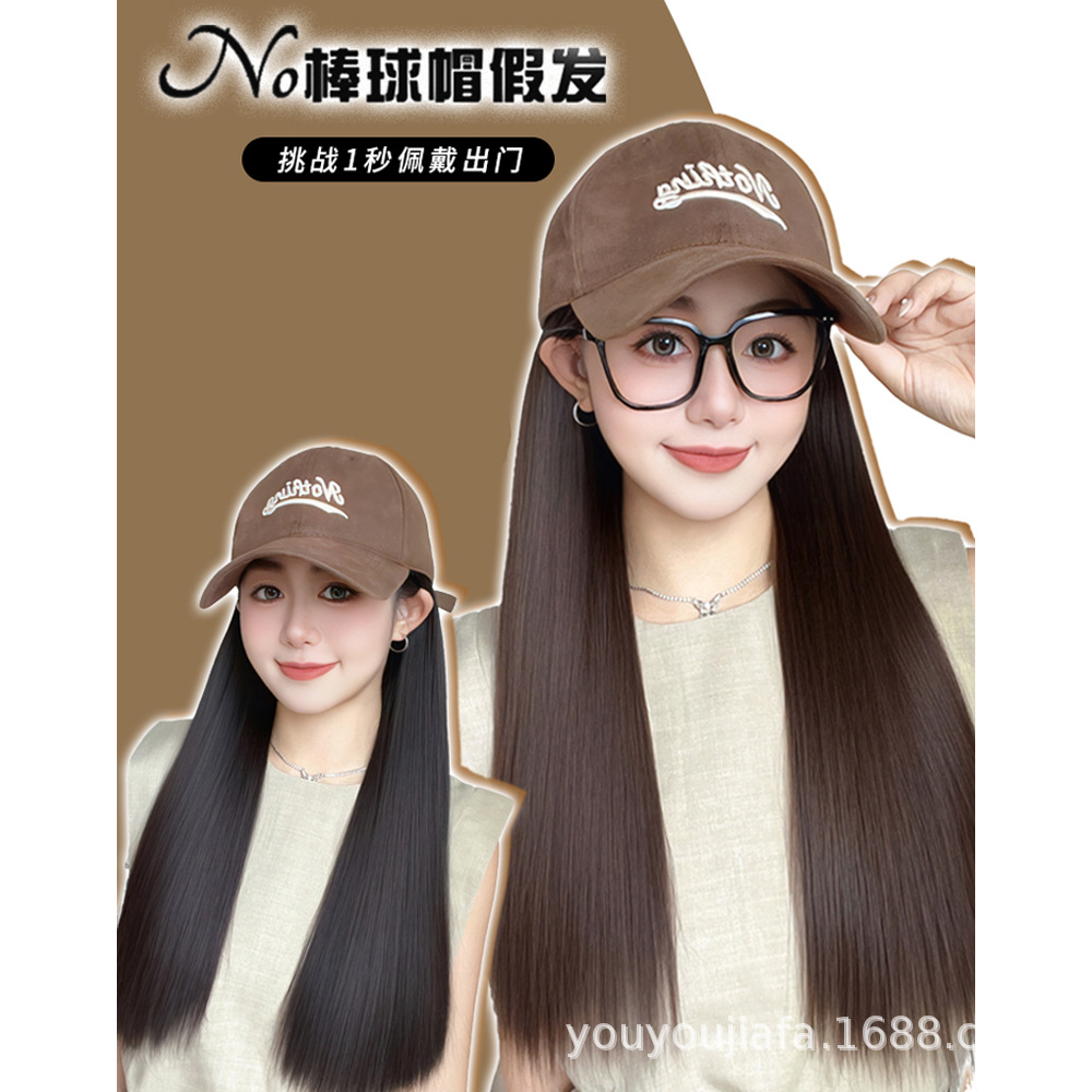 帽子のかつらの一体式のシミュレーションの髪の長いまっすぐな髪のファッションの新版はつばの野球の帽子のアヒルの舌の帽子の全体のカバーを増加します。