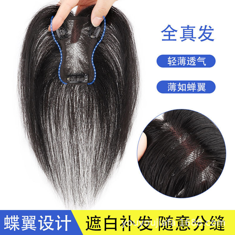 蝶の翼のスイスネットの全手編みの頭の上で女性の薄い通気性の前髪のふんわりしている増加量は白髪のかつらを遮ります。