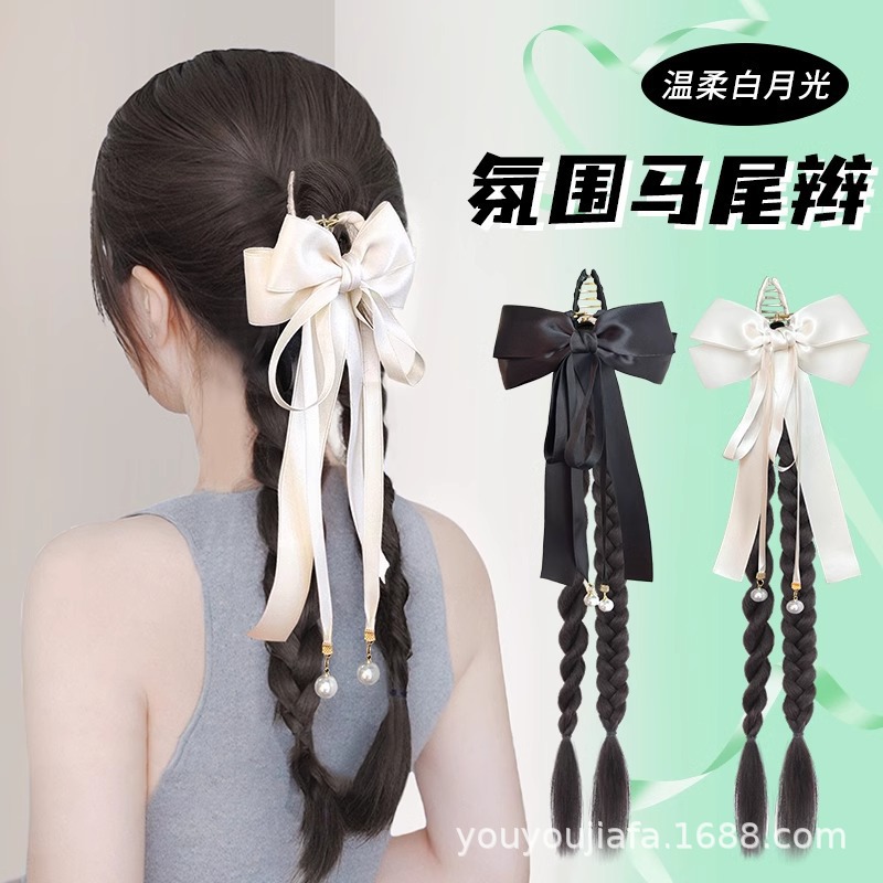 メーカー卸売り超仙雰囲気感アンドロメダリボン白いクリップかつらポニーテールクリップ蝶ネクタイ二重麻花お下げ