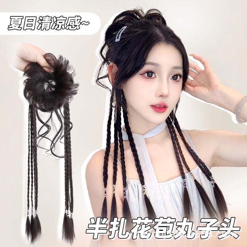 Ins風かつら女性リボンクリップ馬尾麻花お下げ一体式バレエ風シミュレーション馬尾お下げ