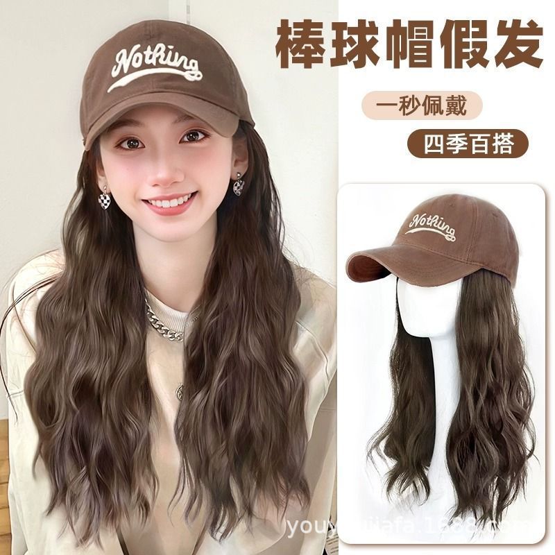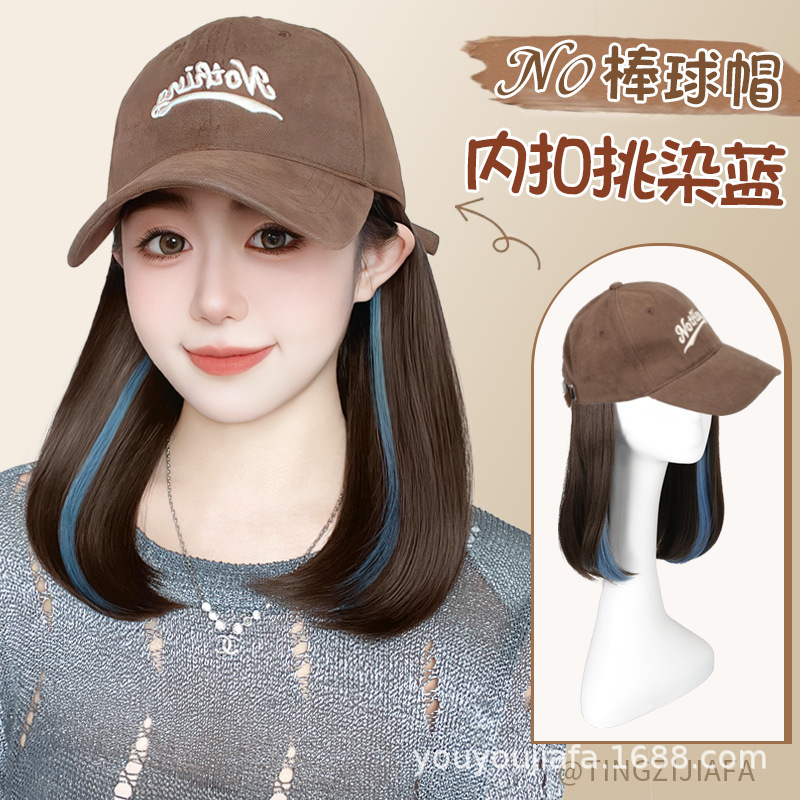 春夏の新型野球帽かつら女性一体鴨舌帽内ボタン染め模擬髪鎖骨直髪内ボタン頭カバー