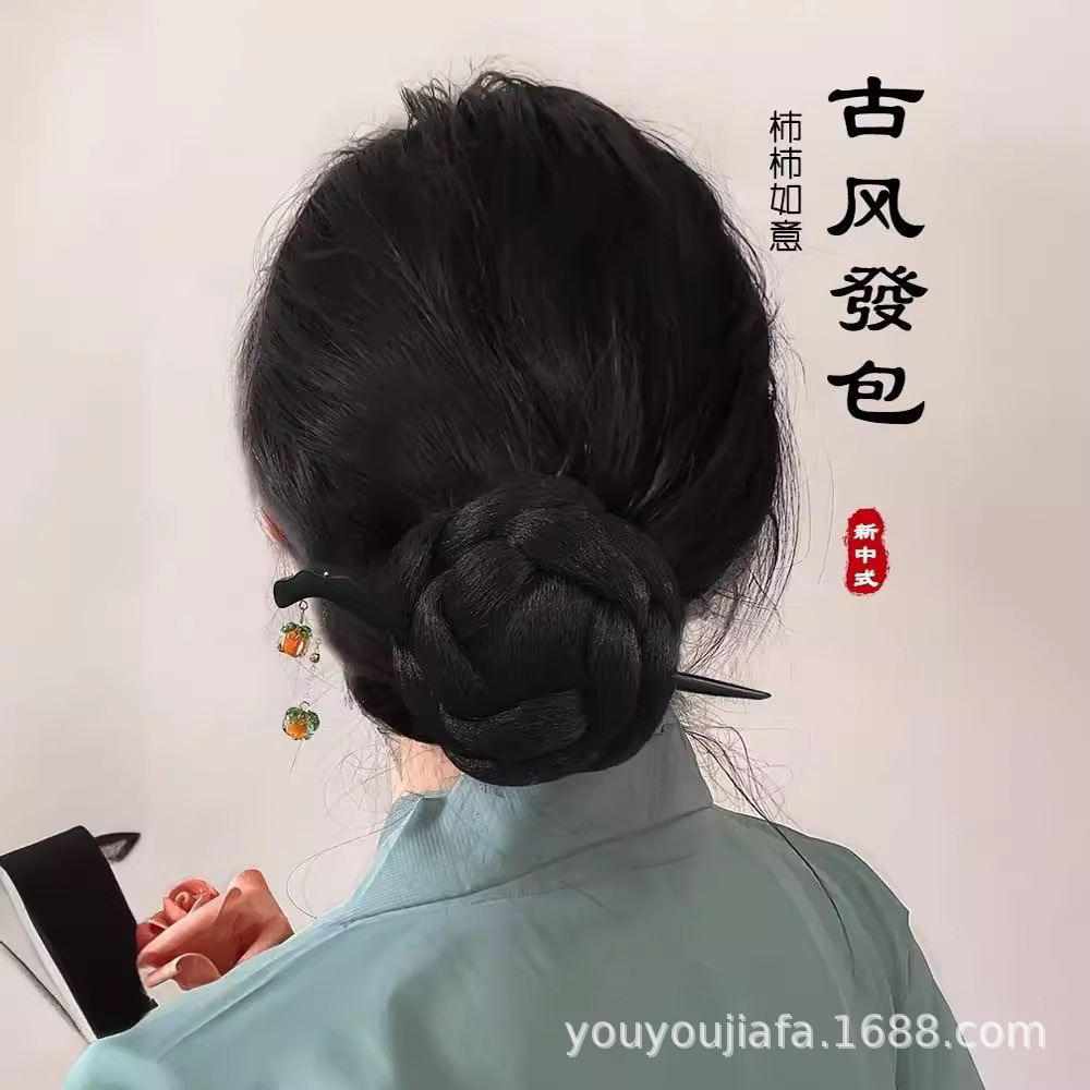 新しい中国式のかんざしの団子の頭のかつらは花のつぼみの後頭部のクッションの髪を巻いて古風なチャイナドレスの髪を包んでかんざしのかつらを作ります。