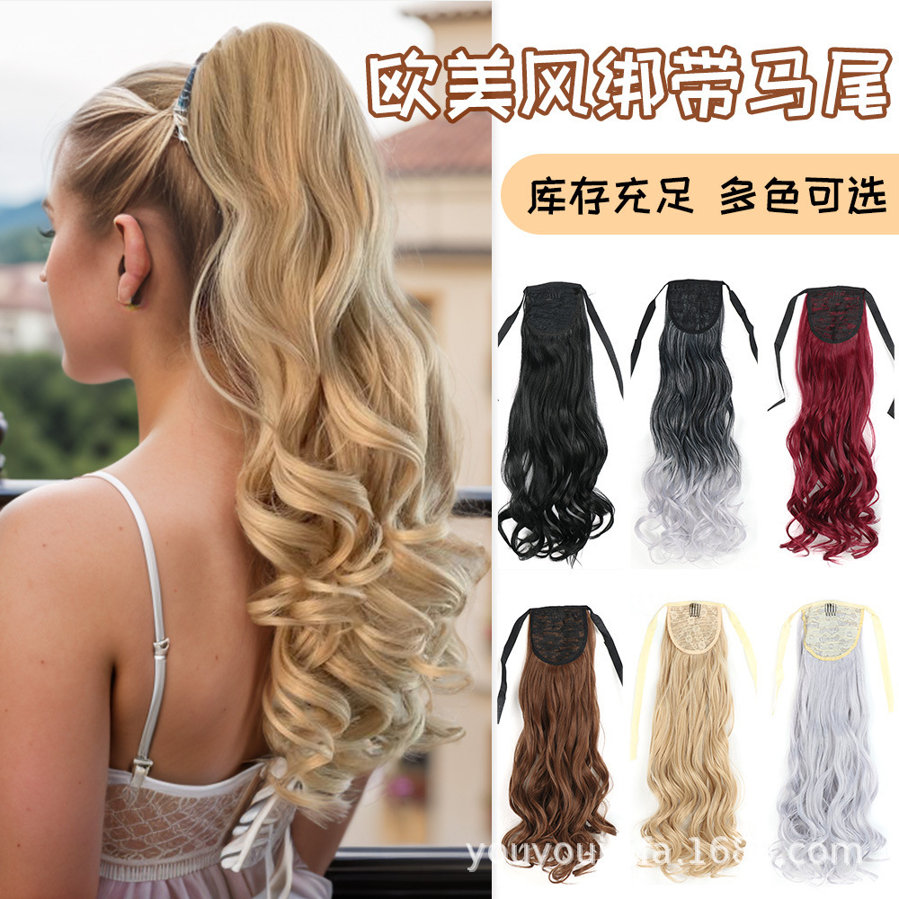 外国貿易の馬尾のナシの花の熱いバンド式のかつらの長い型の大きい波のステルスの跡のないふわふわしているグラデーションの変色の馬尾の卸売り