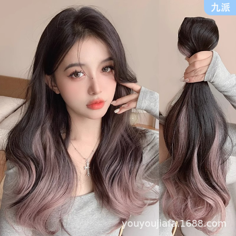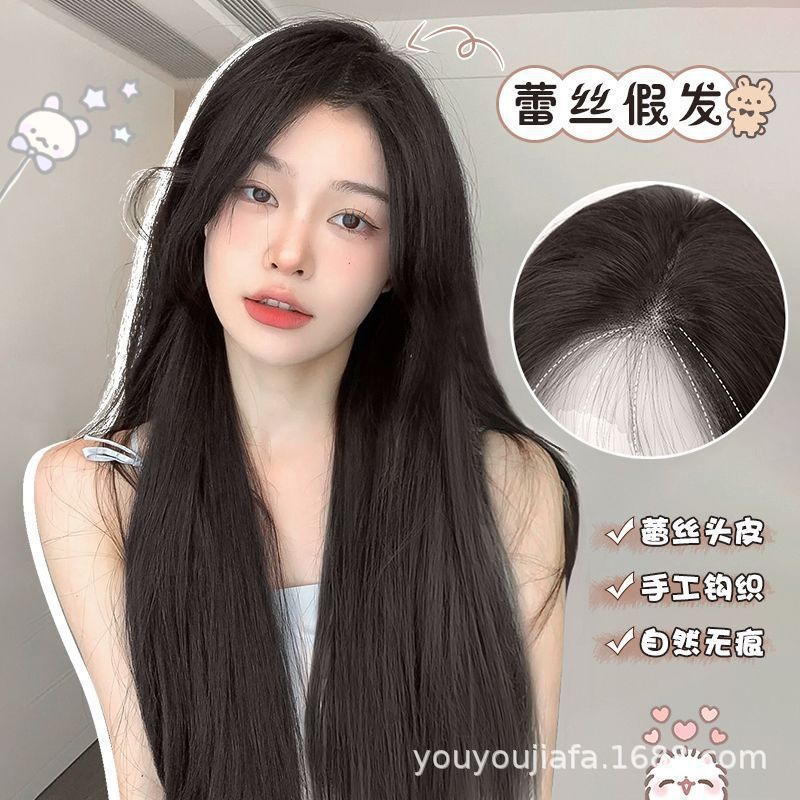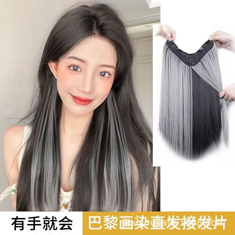 一枚式ロングストレートかつらカラーファッションネットレッドパリ画染v型かつら
