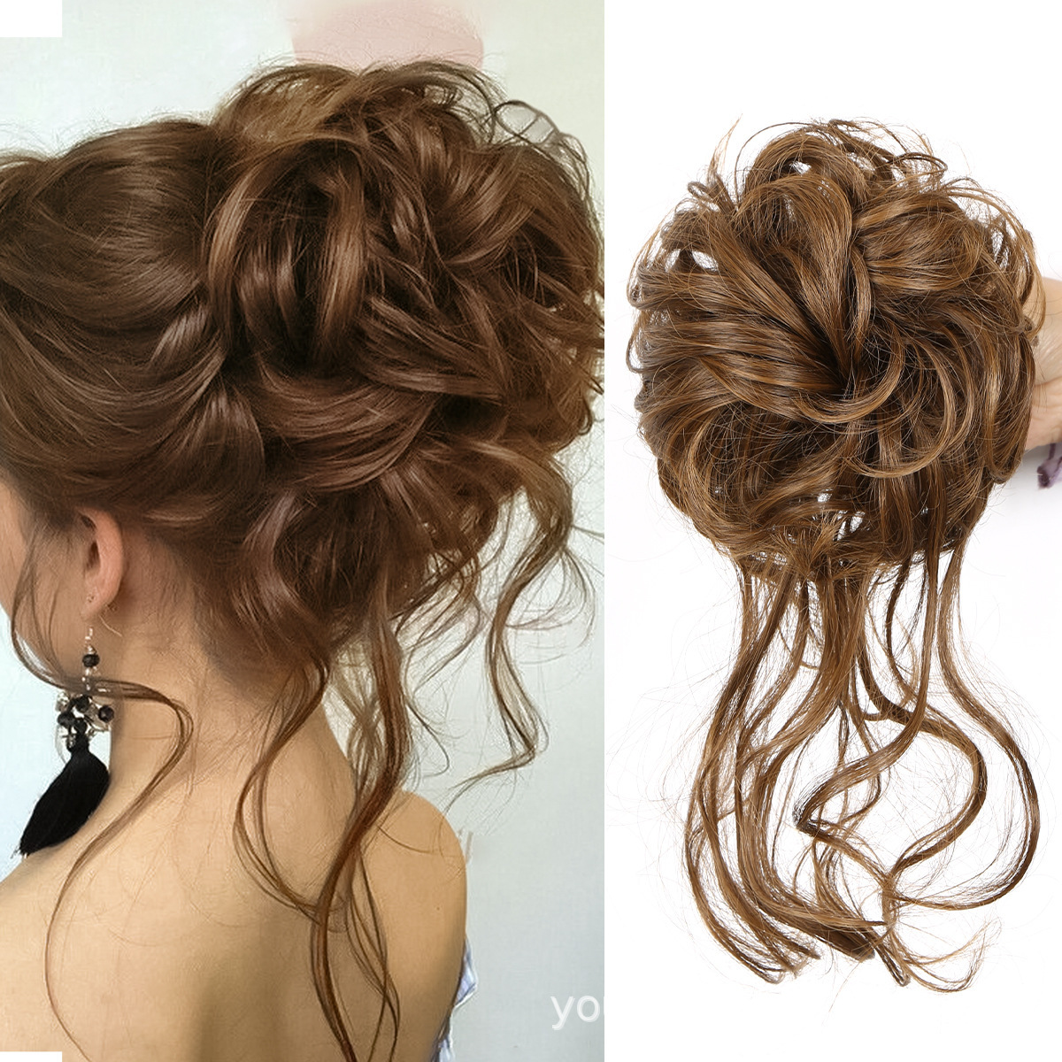 ヘアゴム、化学繊維ボールヘア、後頭部ヘアピース、ふわふわつぼみヘア、ブライダルローボールヘアゴム