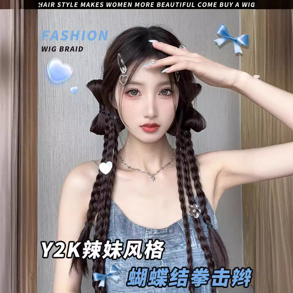 かつらのお下げの子供は蝶結びのボクシングのお下げを挟みます。