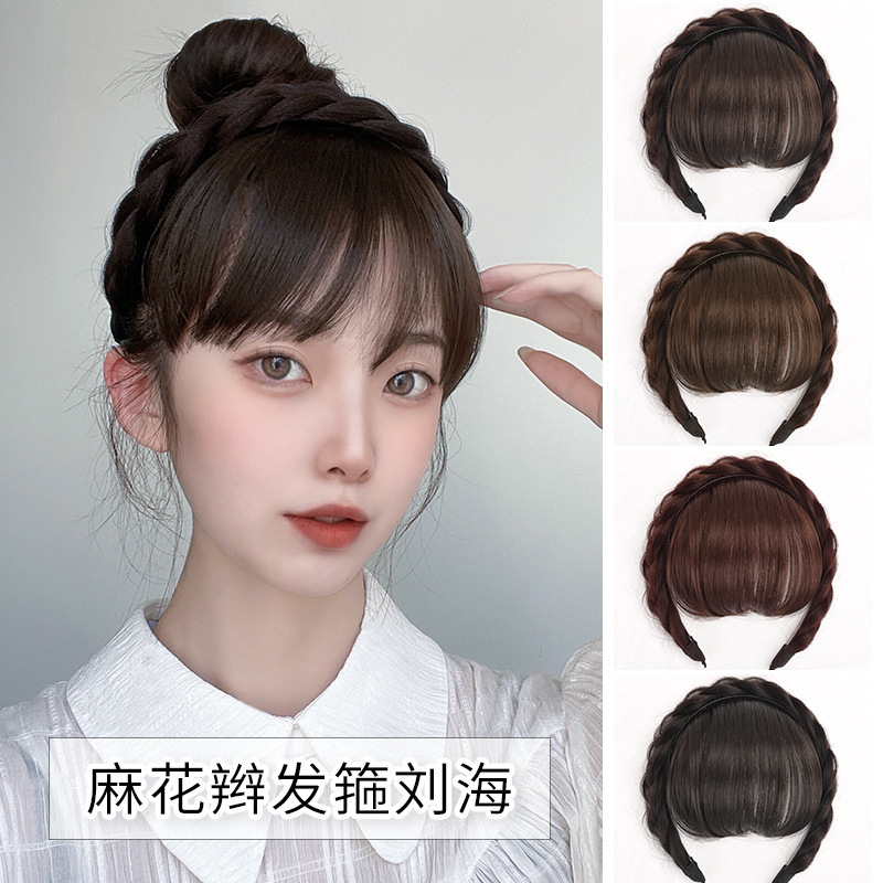 髪のカチューシャの前髪のかつらの女性の魚の骨のお下げのカチューシャの一体の前髪のシミュレーションの人の髪のステルスの跡がなくて白髪の前髪の前髪を遮ります。