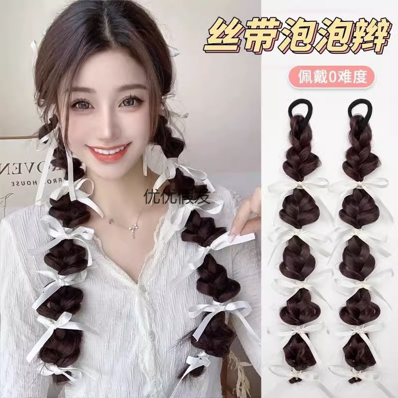 かつらのお下げバレエ少女はリボンの泡のお下げをシミュレートします。