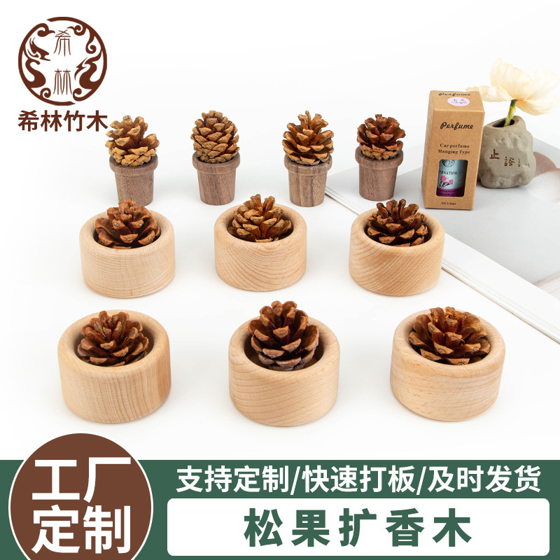 ブラックウォールナット松ぼっくりディフューザー木製アロマセラピー木製ホームベッドルーム長期持続フレグランス装飾品車のエッセンシャルオイルディフューザー装飾品