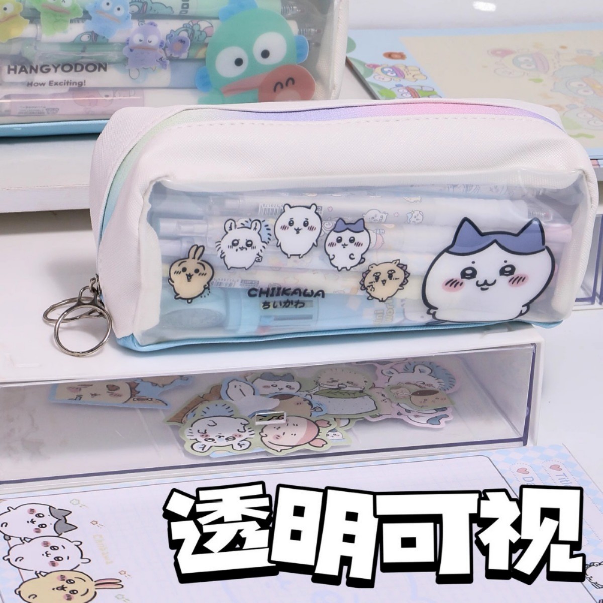 かわいい半透明文具箱消しゴム定規小庫漫画学生大容量収納蛍光鉛筆バッグ
