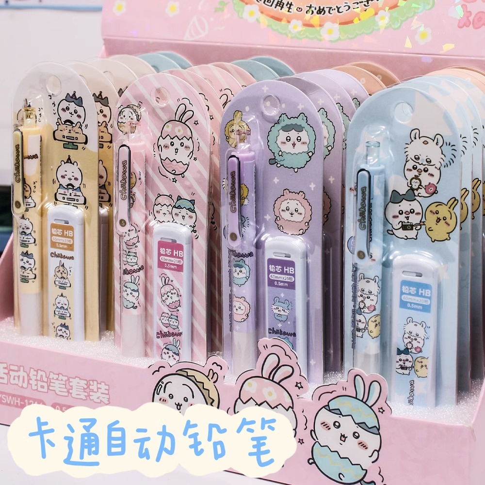 入れ替え芯付きシャープペンシル0.5mmHBクロミ学生押しペン玉桂犬醜い魚文房具ケース