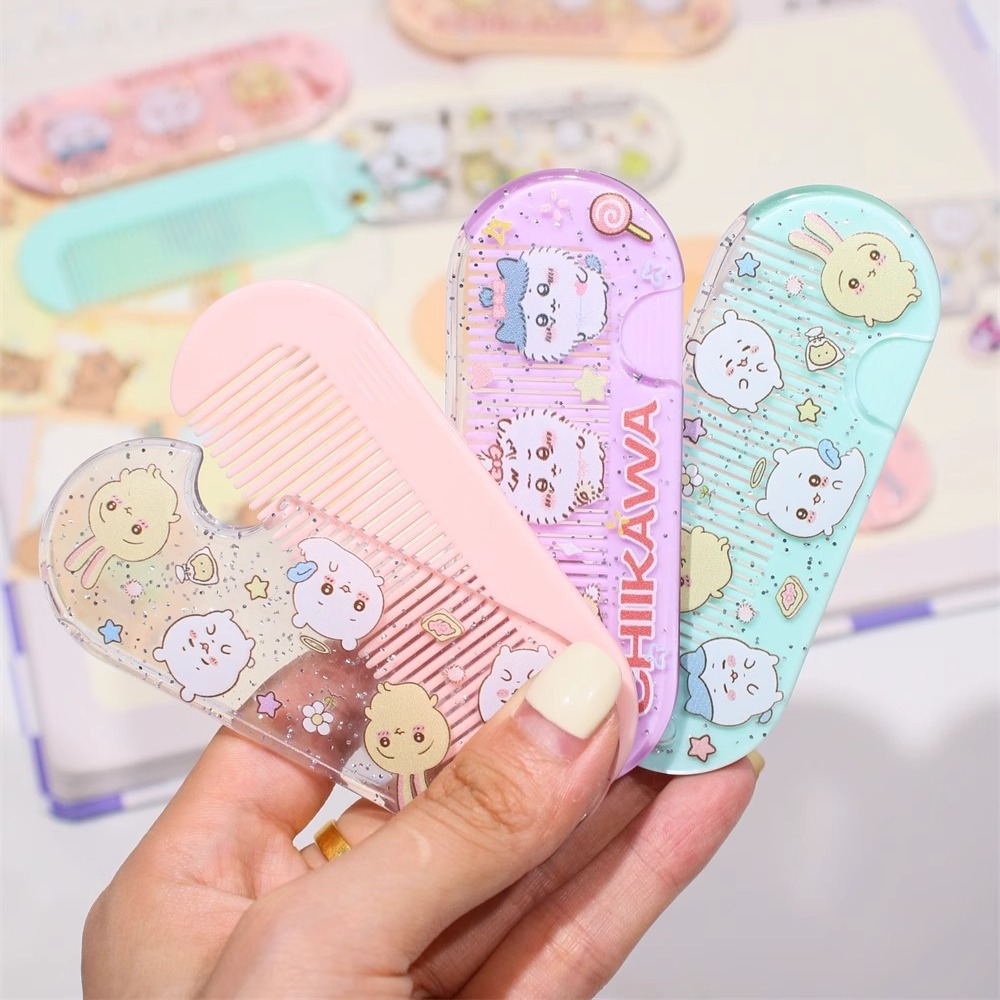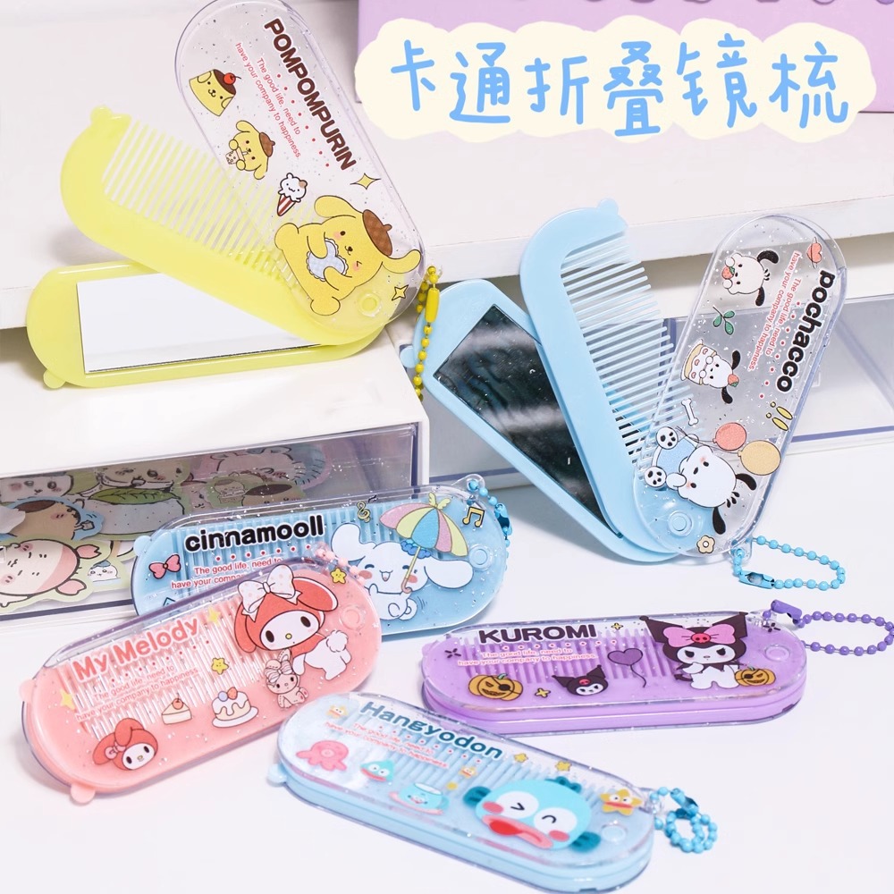 女の子のハートが破裂する漫画の折りたたみ式小型コームとミラーコームが一体化した子供や学生向けの癒しのスーツで持ち運び可能
