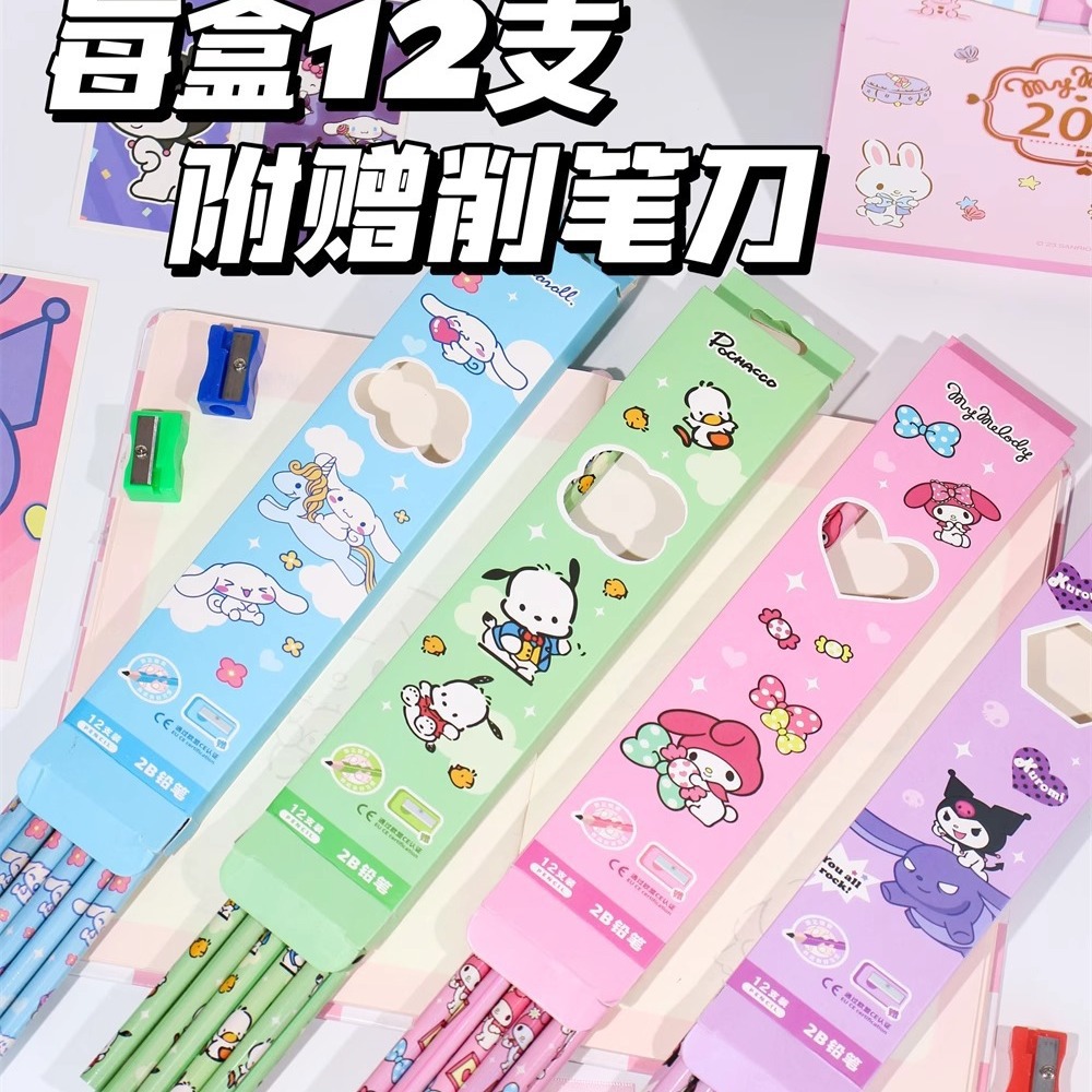 小中学生向けのかわいい漫画の2B鉛筆12本入りボックス、折れにくい鉛筆、子供向けのかわいい書き物文具