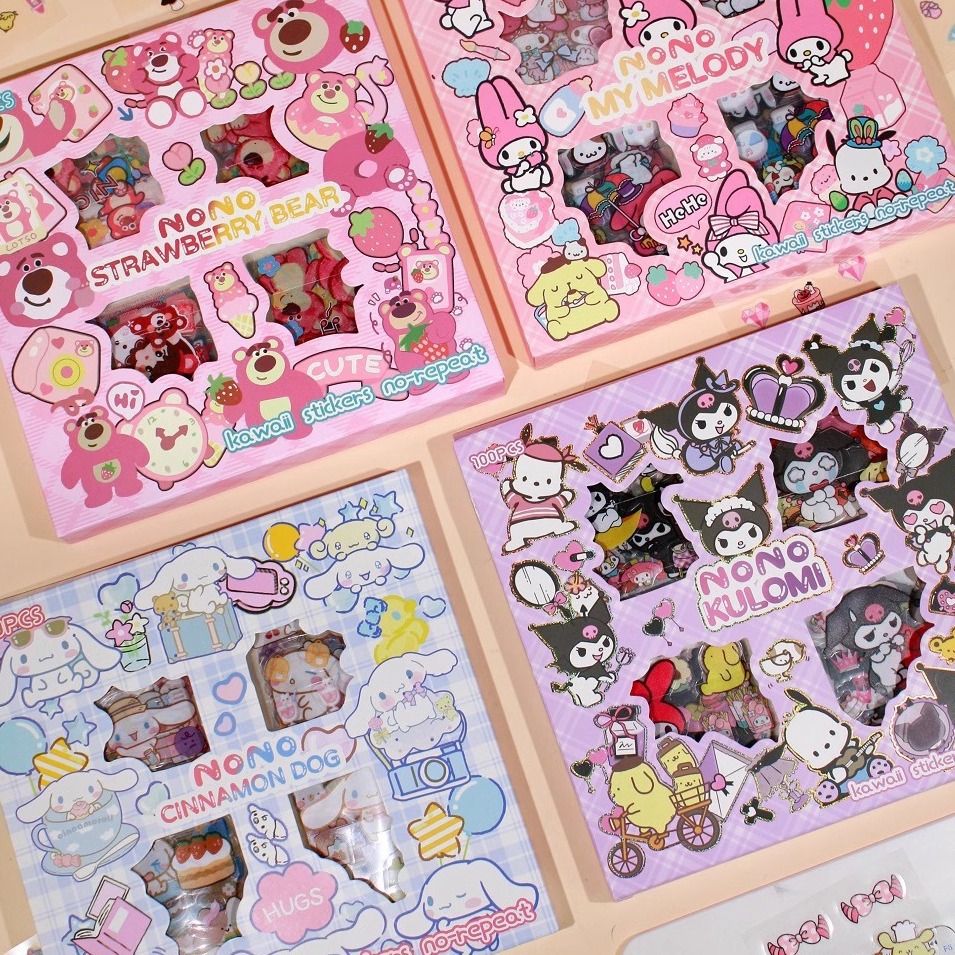 新しい100枚のギフトボックス装飾手帳シールかわいい学生児童貼り絵 _ カード盤防水クーロミ貼り