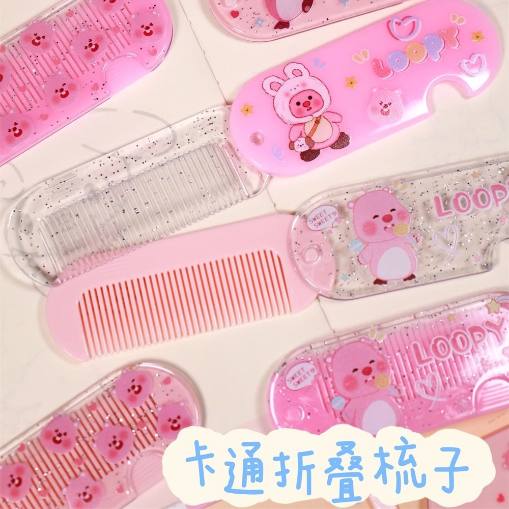 少女のかわいい櫛のビーバーの学生はバッグを持って前髪の櫛を折って清潔にして携帯用のペン付きの袋を置きます。