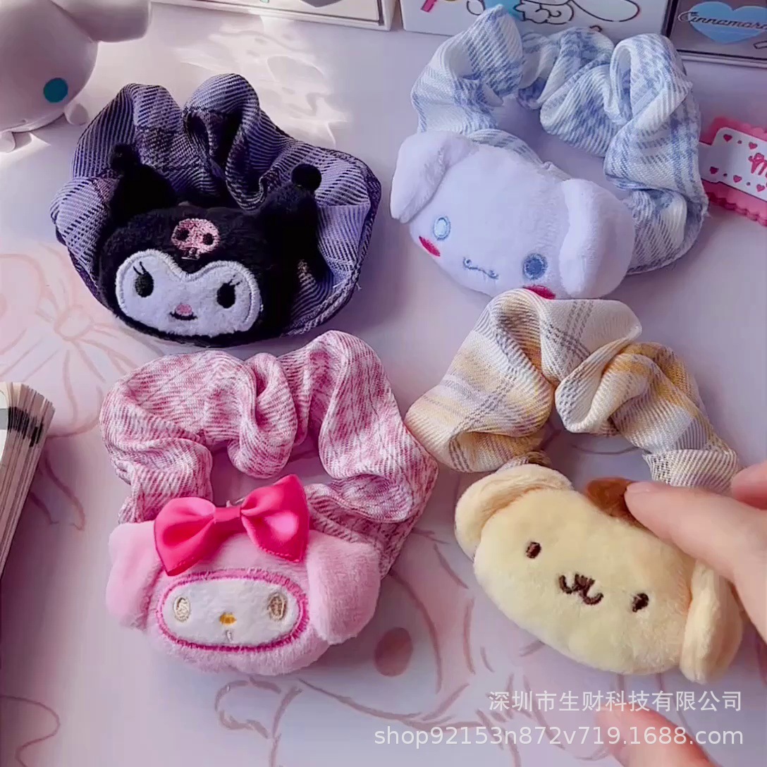 かわいい少女の心の玉桂犬のクロミのぬいぐるみの髪飾り美楽ティ大腸の髪輪の後頭部の手の皮筋