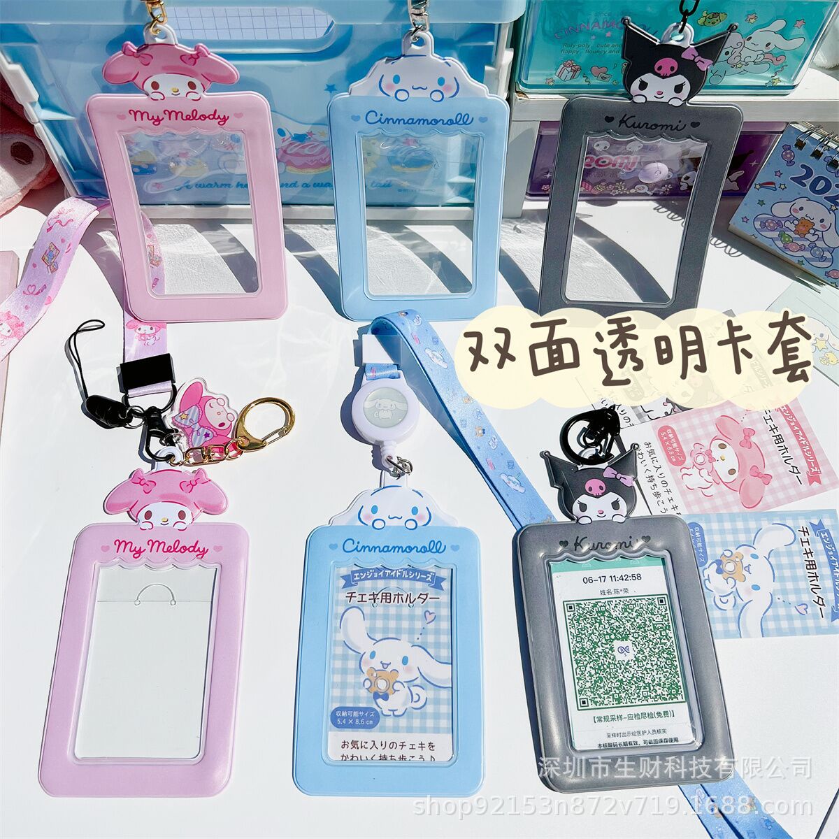 女子学生向けのかわいい日本製格納式IDカードホルダー、漫画の小さなプリン、透明なライスバス、核酸名、かわいい識別カードホルダー