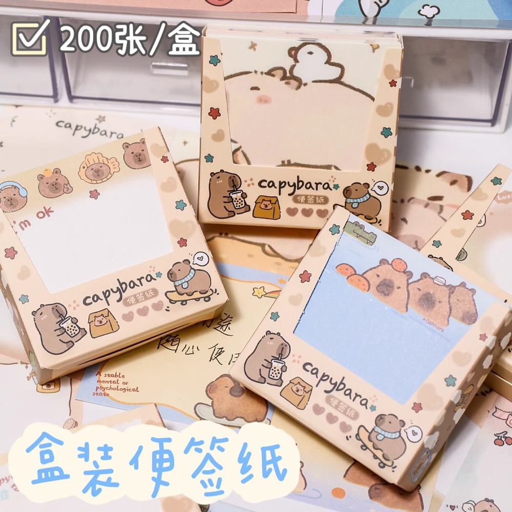かわいい箱に200枚の付箋紙が入っています。