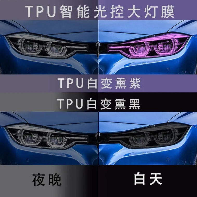 30 * 120tpu自動車ヘッドライトフィルム光制御変色自己修復透明保護フィルムtpu薫黒テールランプフィルム