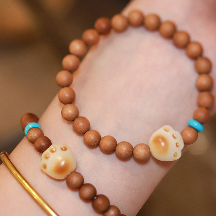 「乳味猫爪」天然乳香老桃木手串女炭焼木製カップルブレスレット誕生日プレゼント