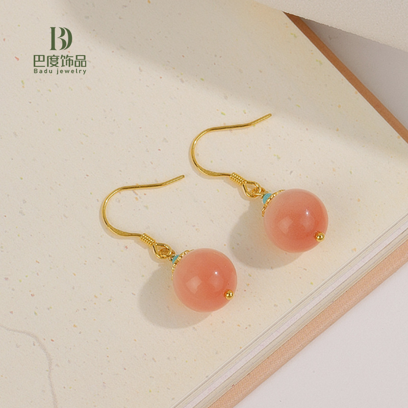 新中式925シルバーイヤリング、上品で個性的な高級感、中国古風塩源瑪瑙イヤリング、卸売
