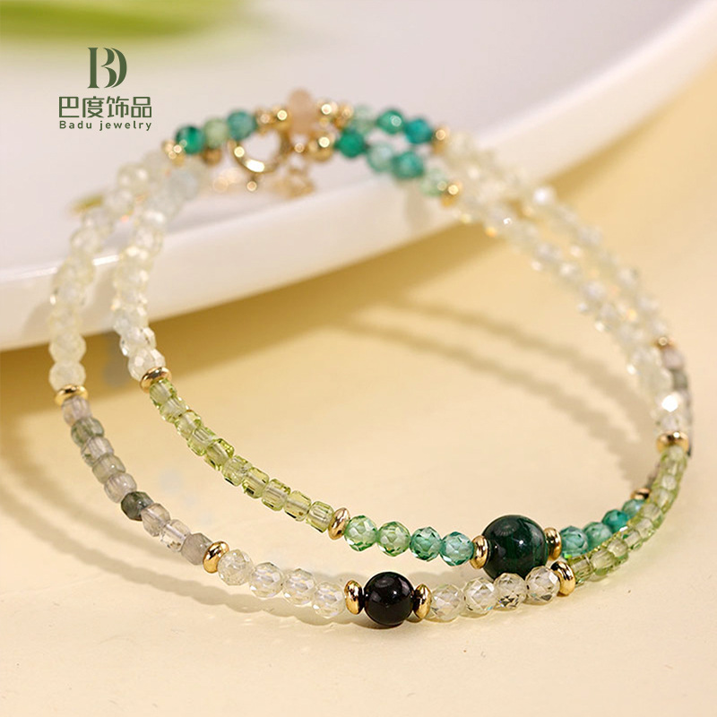 緑の水草瑪瑙のブレスレットの女性の夏の水晶insの小さい大衆の設計の閨蜜は玉を回転して手で幸運を編みます。