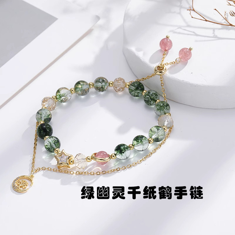 緑の幽霊のイチゴの結晶の水晶のブレスレットの千羽鶴のブレスレットのプレゼントは彼女に転送します。