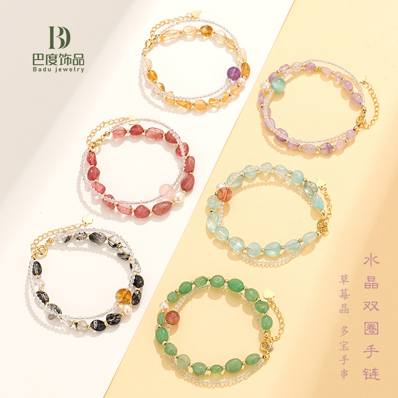 新商品のイチゴの水晶の双輪のブレスレットの女性の大衆の高級感の東陵玉の海の藍の宝の多宝の手串の装飾の卸売り