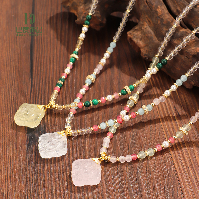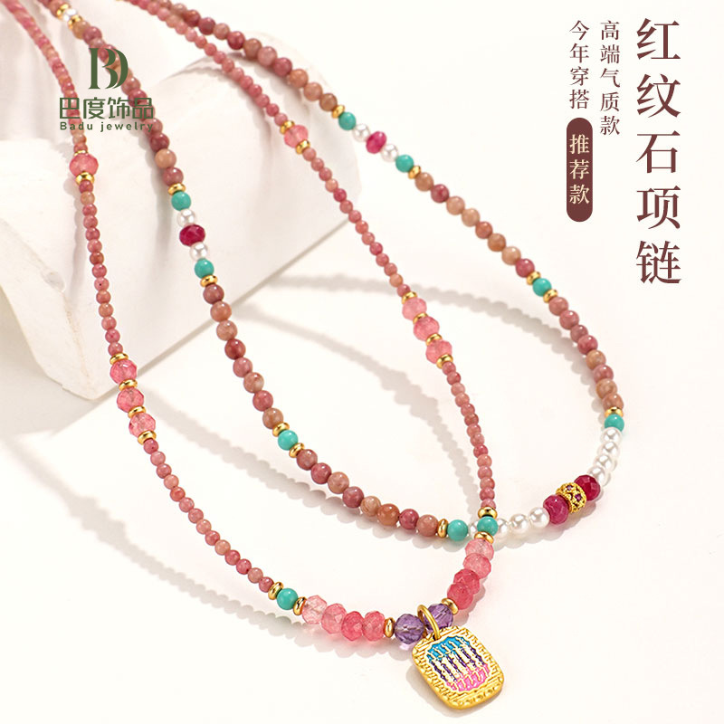 新商品バラ石赤緑グラデーション水晶真珠ネックレス女性百合高級感赤紋石ビーズネックレスアクセサリー