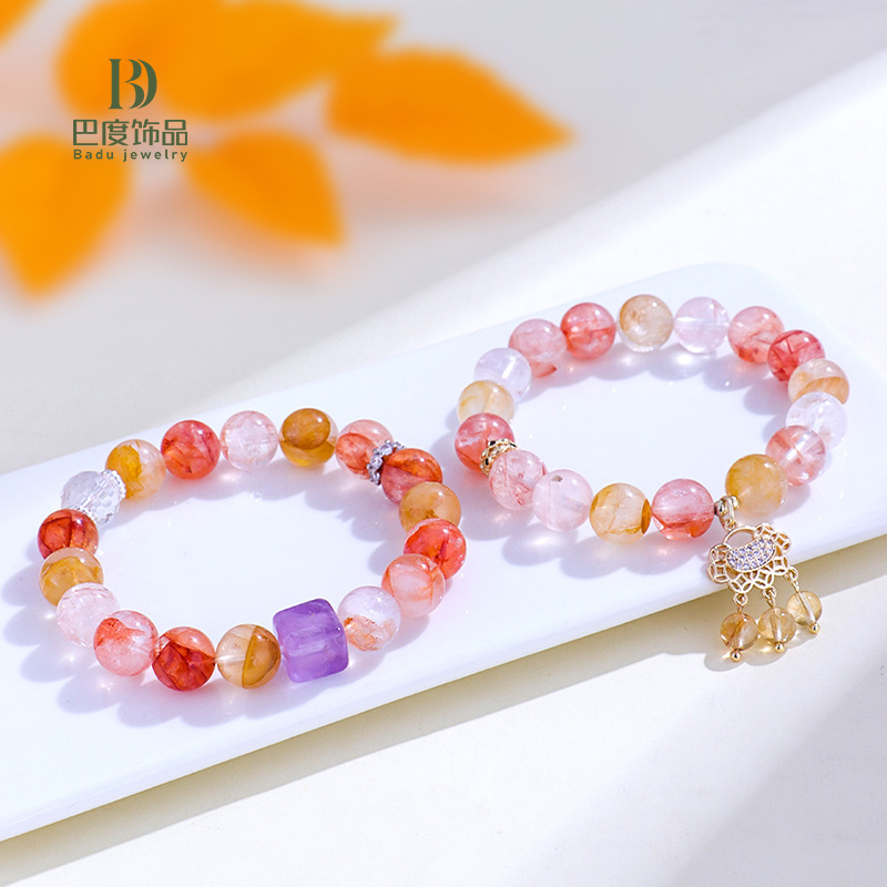 新商品バラ石紅白グラデーション水晶ブレスレット女性小衆高級感デザイン赤紋石手串手飾り卸売り