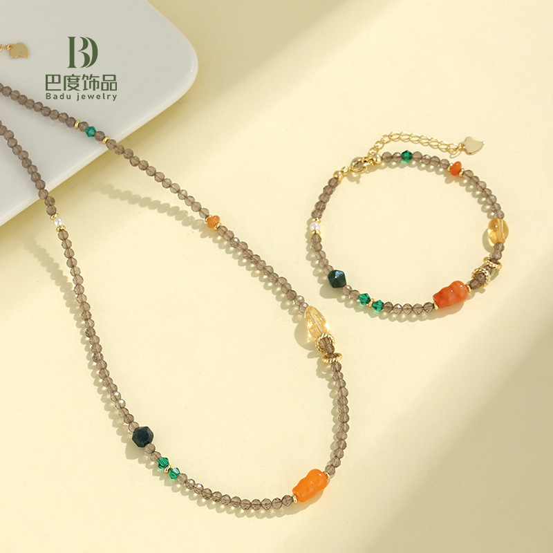 新品3mm切り茶晶ビーズ水晶ビーズブレスレット女性アクセサリーネックレス女性金糸玉瓢箪手串