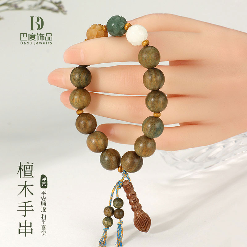 新商品の緑檀木仏珠文は手串民族風カップルのブレスレットを遊んでいます。