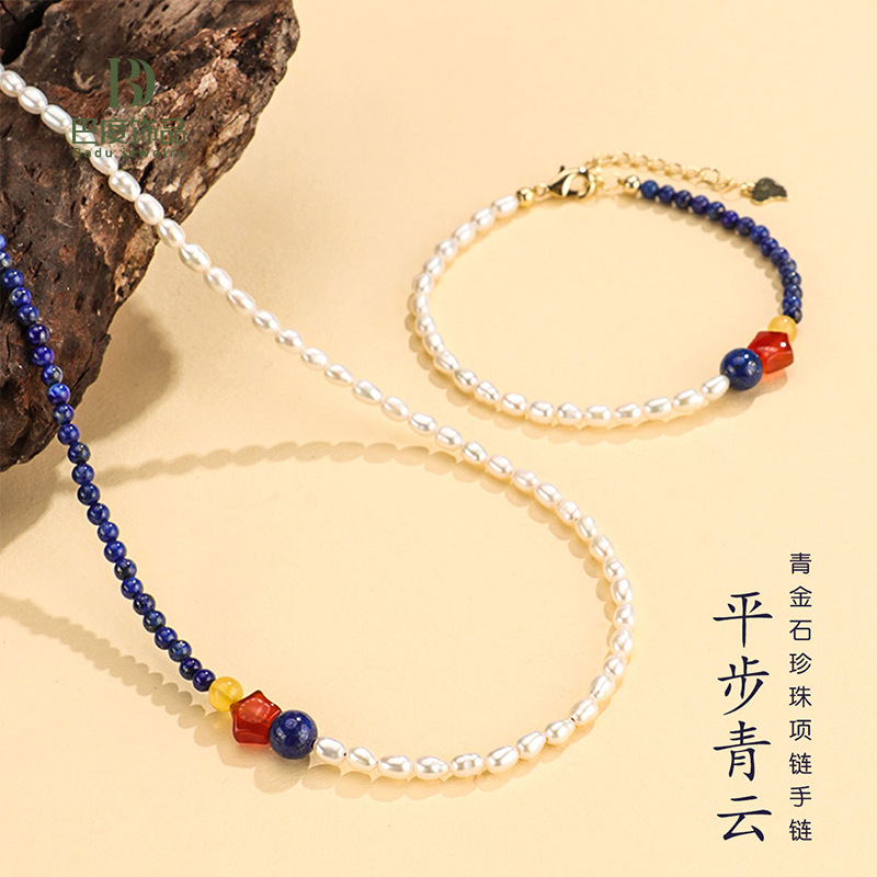 【平歩青雲】新中国式青金石真珠ブレスレットのネックレス