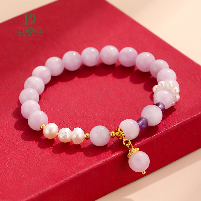 新商品925銀紫リチウム輝淡水真珠貝珠ビーズブレスレット女性小衆紫水晶手飾り卸売り