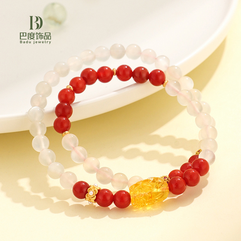 新商品のミツロウピシュピスト新中国風白月光水晶ブレスレット女性大衆高級感南紅手串手飾り卸売り