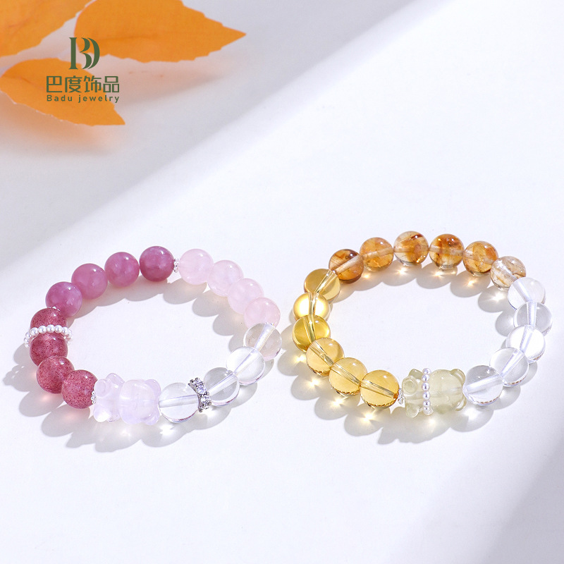 新商品の馬のピンクの水晶の熊の数珠のブレスレットの女性の大衆は高級感のレモンの結晶の手の串の卸売りのアクセサリーに入ります。