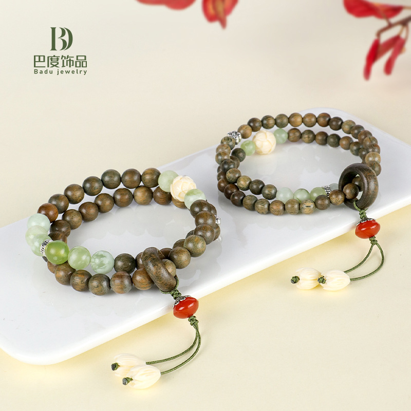 新商品の緑檀木の山の玉の双輪の数珠のブレスレットの小衆の高級感の象牙の実の蓮の花の手の装飾の卸売り