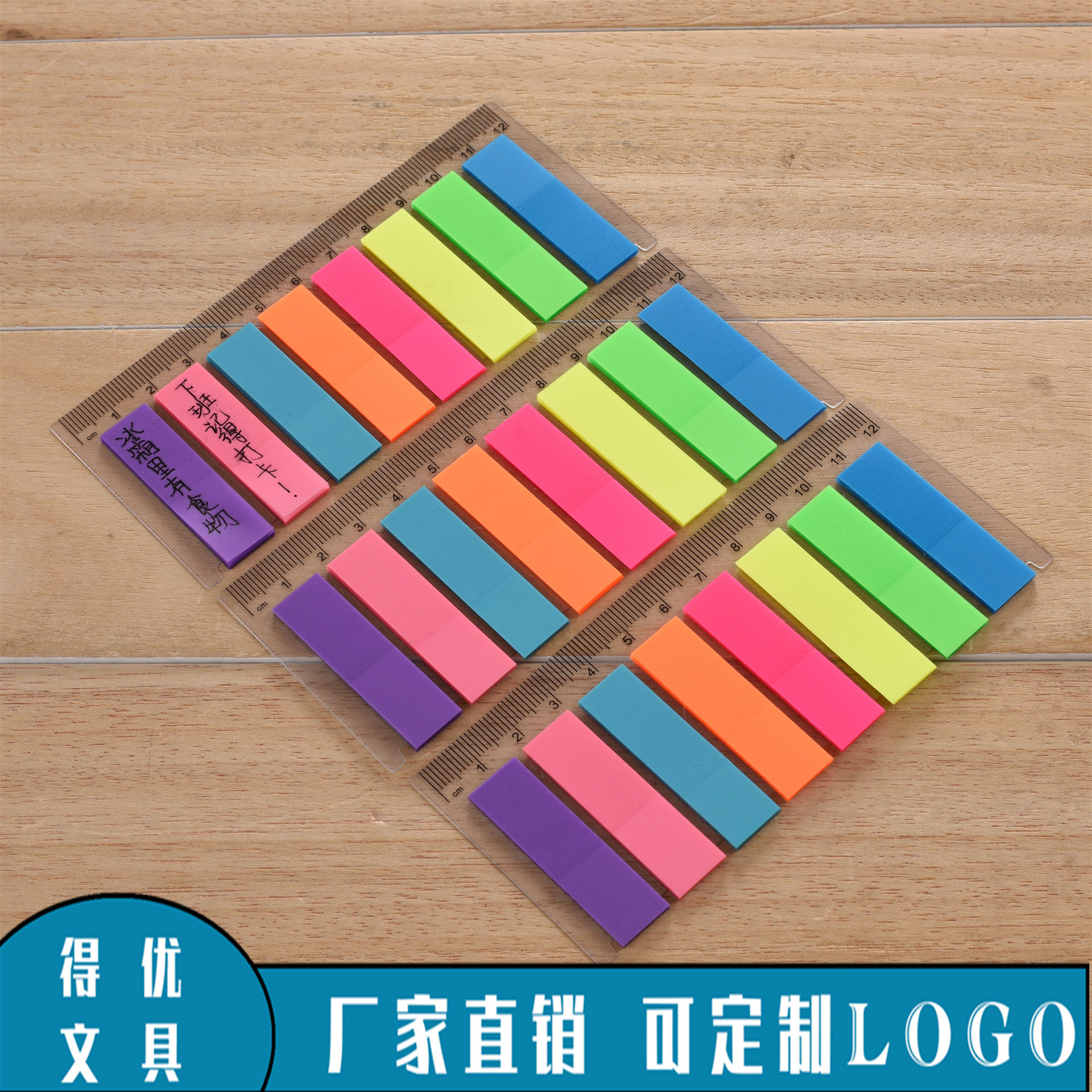 蛍光膜10条指示ラベル分類pet付箋蛍光印刷可能ロゴ付箋メモ文房具