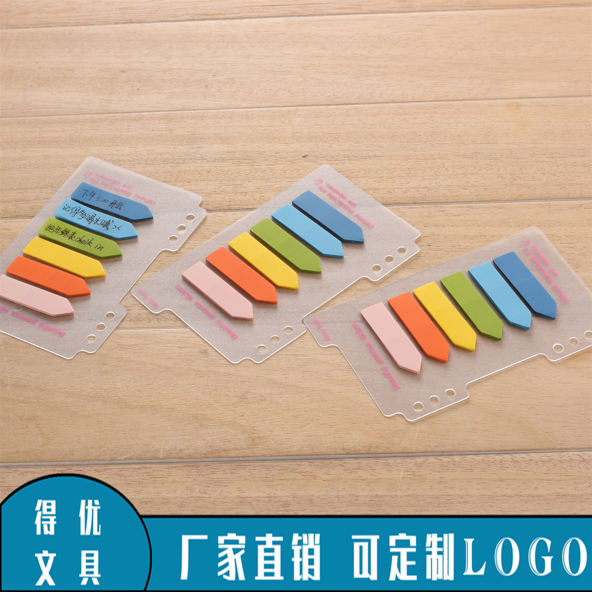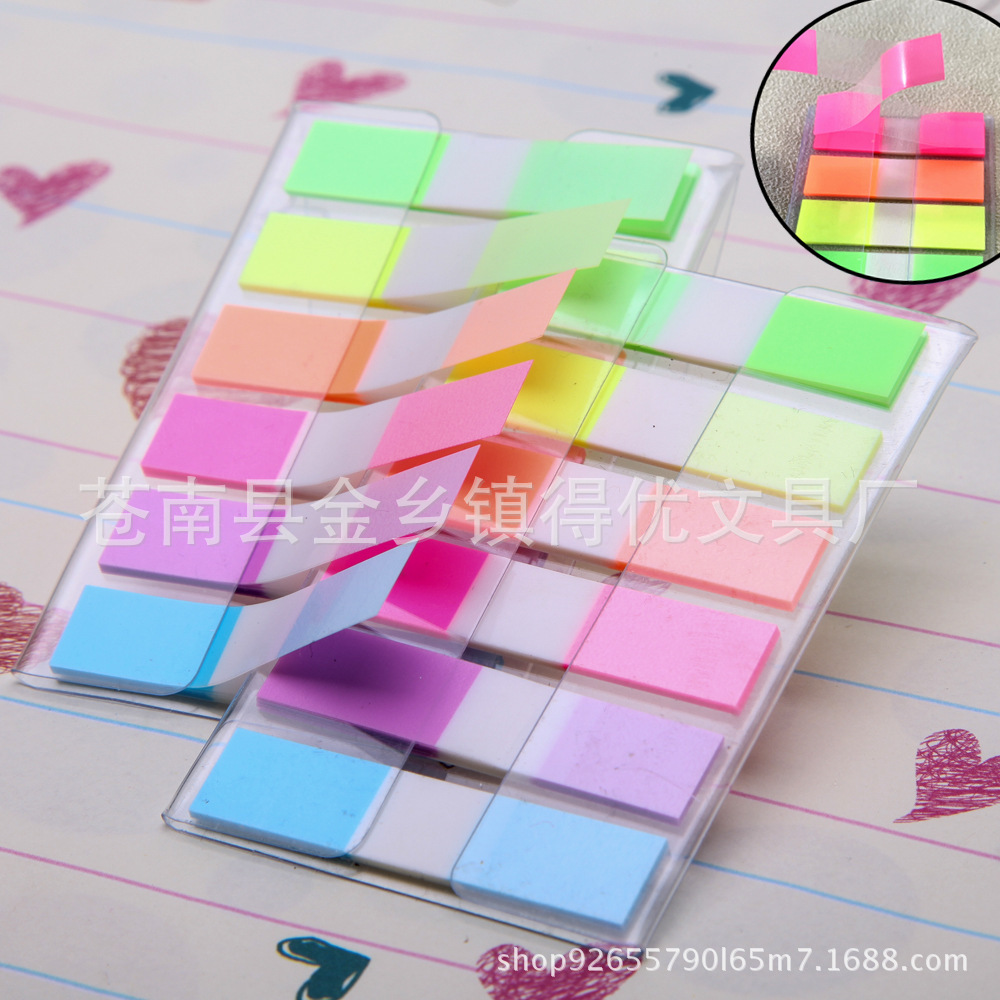 メーカー現物学習用品文房具五色蛍光透明pet平頭付箋事務用品インデックス貼付